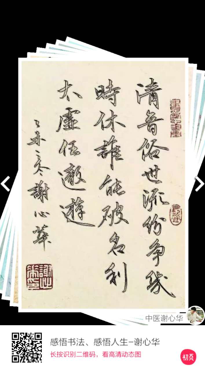 谢老师不仅热衷中国传统书法艺术,同时致力于中医的传承与发展,并著有《谢心华中医医案》。