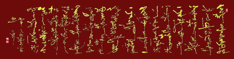 运笔速度一味快,则纯阳无阴;一味慢,则纯阴缺阳。两者均是书法之大忌。大狂草书体的运笔速度,是疾速与迟重并举。书写速度依据书写内容既有疾速如电的快又有迟重兼施的慢,体现阴阳平衡、刚柔相济。