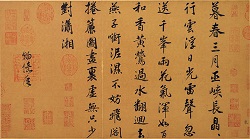 赵构(1107-1187)宋高宗,字德基,宋徽宗赵佶第九子,钦宗赵桓弟。15岁封为康王,北宋靖康元年(1126)十一月,金兵攻陷宋都汴京(今河南开封),徽、钦二帝做了俘虏,北宋灭。其时,康王赵构正受命为河北兵马大元帅,拥兵万人在外。宋旧将臣便拥戴他为皇帝。翌年(1127)五月初一日,21岁的康王构在应天府(河南商丘,当时称南京)正式即帝位,改元建炎,史称南宋,构即为高宗。为南宋第一个皇帝。 赵构即位初年,尚能起用一些抗战派将领。但他不是力图北进收复中原,而是一心想讨好金人,南迁后建都临安(今浙江杭州)。他为政是“直把杭州作汴州”,只知道向金纳贡称臣,苟且偷安,在位三十六年,成偏安之局。赵构政治上昏庸无能,然精于书法,善真、行、草书,笔法洒脱婉丽,自然流畅,颇得晋入神韵,明代陶宗仪《书史会要》称:“高宗善真、行、草书,天纵其能,无不造妙。”其书法影响和左右了南末书坛,后人多效法其书迹。赵构少即醉心书道,陆游曾说:“思陵妙悟八法, 留神古雅,访求法书名画,不遗余力。清闲之燕,展玩摹拓不少怠。”他曾自谓:“余自魏、晋以来以至六朝笔法,无不临摹,众体备于笔下,意简犹存取舍,至若禊帖,测之益深,拟之益严,以至成诵。”他整理收集宣和内府因战乱而散失的占代法帖名画,身体力行地提倡大众研习书法。他认为:“士人于字法,若少加临池之勤,则点画便有位置.无面墙信手之愧。”他自己善学<兰亭序),便赠之与王子和朝中大臣,又让宋孝宗学书。一时间,以高宗为中心,南宋几乎掀起了一个学书高潮。马宗霍在《书林藻鉴)中说:“高宗初学黄字.天下翕然学黄字,后作米字,天下翕然学米字,最后作孙过庭字,而孙字又盛……盖一艺之微,苟倡之自上,其风靡有如此者。”这种以权贵的好恶而人为左右书体盛衰,影响了南宋书法的发展,但宋高宗对南宋书坛的贡献还是不能抹杀的。著有《翰墨志》一卷,传世墨迹有《草书洛神赋》、《正草千字文》及《光明塔碑》等。传本《顾恺之女史箴图题字》、《褚遂良倪宽赞》 等亦有指为构所书者。