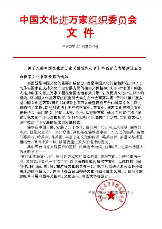 关于入编中国文化进万家《佛性即心明》书画百人卷暨建设五台山禅
