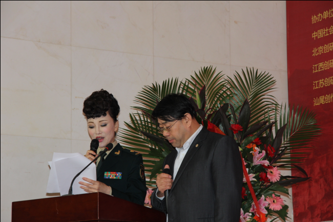 中国社会艺术协会副主席兼秘书长邱新建在讲话中指出,中国社会艺术协会榜书委员会是中国社会艺术协会的二级机构,自成立以来,坚持“爱国为民、重德尚义、弘扬榜书、开拓创新”的发展理念和方针,团结国内外榜书艺术家和书法爱好者,对榜书艺术进行系统学习和交流创新。今天,展现在大家面前的这些作品,就是他们近一段时间以来所创作的艺术结晶。党的十八大以来,中国社会艺术协会榜书委员会在苗小龙会长带领下,认真学习贯彻习近平总书记在全国文艺座谈会上的重要讲话精神,大力弘扬井冈山精神、延安精神、西柏坡精神、沂蒙精神,开展红色教育,谱写红色篇章,培育红色精英,弘扬传统文化,促进榜书发展的工作思路,认真地策划并组织开展了中国榜书革命圣地行,红色文化公益行等一系列活动,先后在遵义、南昌、连云港、太原、延安、合肥、西柏坡、井冈山、沂蒙等地,开展了传承红色精神的纪念活动,收到了良好的影响和社会效益。