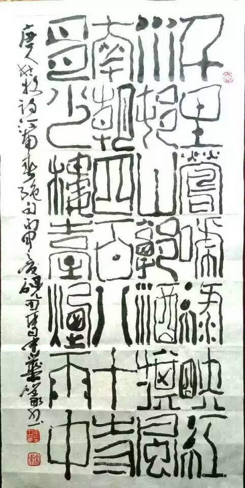 中华修养全面,他深厚的文学天赋和艺术素养,是经过几十年坚持不懈的参悟历练积淀而来的。酷爱书法的中华同任何有成就的书法家一样,几十年来做过很多功课,故使笔下的作品碑帖兼融,浑厚拙朴。有人称其篆书方整峻秀,古拙华滋;隶书活泼跃动,笔飞墨舞;楷书根基于欧,融碑化帖;行书和行草书畅达婉约,见笔见性,各种书体往往又都溶于一炉。很多作品都气韵生动,笔画舒展,铁画银钩,洒洒落落,翰墨焕彩猶如春风袭人。我以为说的并不过誉。书法讲究精气神,一件书法尤其是行楷、行草书作品如果缺少精神、气脉、神韵,很难有什么艺术感染力可言,而中华的书法恰恰注重的是精气神在书写过程中的化用和体现,因此作品总能令人有所回味、让人引发出共鸣。