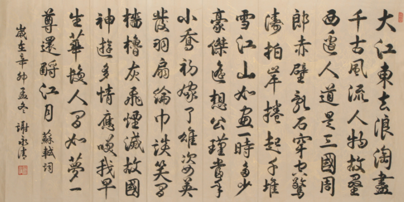 谢永清,字翰青,浙江路桥人,大专文化,国家一级书法师。自幼爱好书法,遍临名碑法贴,在继承传统的基础上,取其秀润和变化。学书四十余年如一日,坚持研习。在学书中,一专多能,博采众长,融百家之风神气韵于一体,追求挺拨秀丽、流畅、朴质、飘逸的艺术风格,表现书法自身之美。其书法作品势欲飞舞、婉若回弯、玲珑剔透、栩栩如生。以为“书法的创作必须吸收传统书法的营养”。